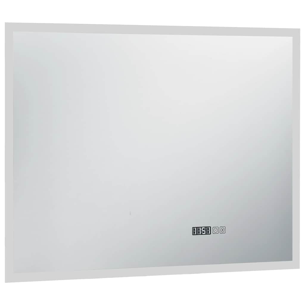 Espelho de parede LED c/ sensor tátil e relógio p/ WC 80x60 cm