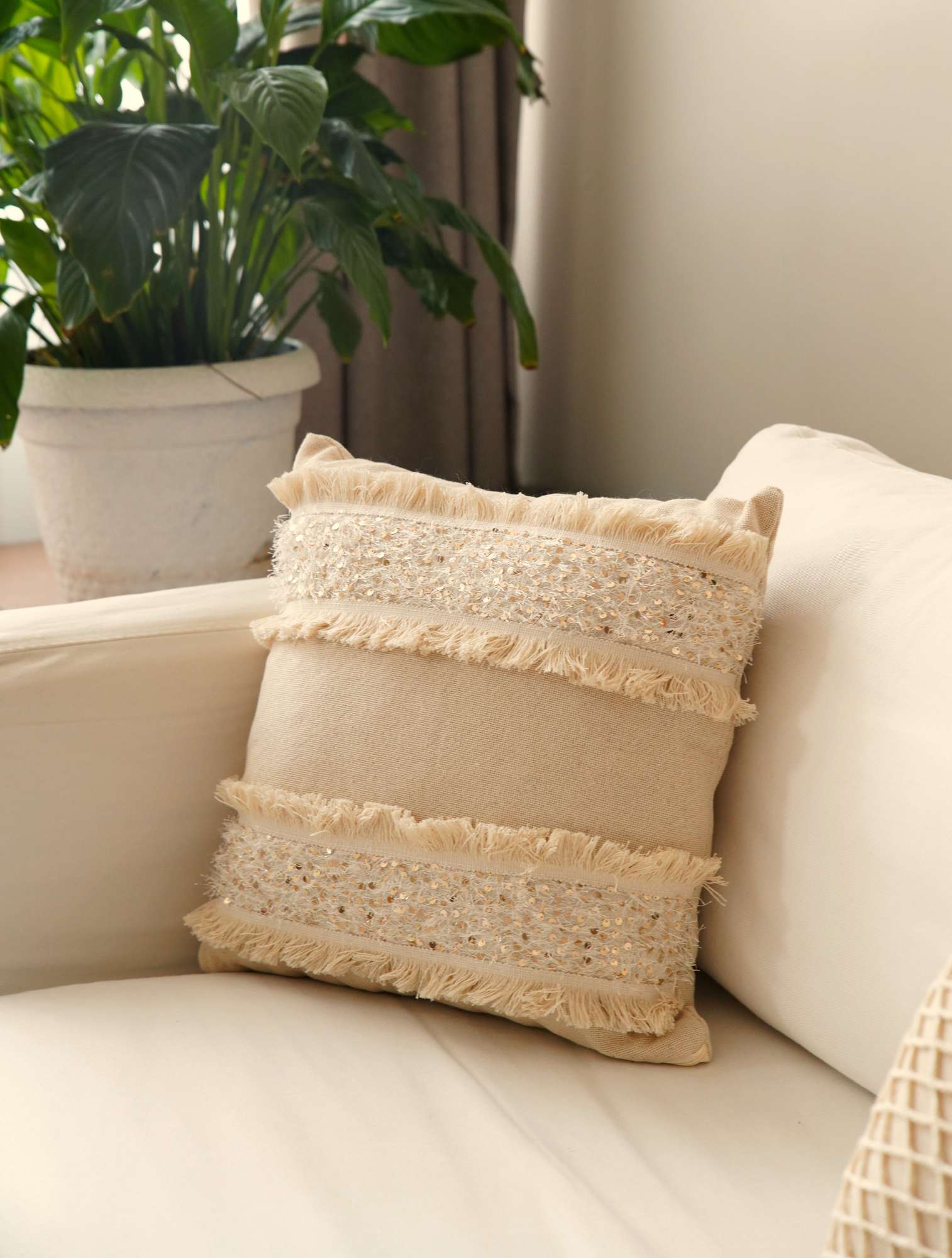 Capa de almofada – 43 x 43 cm – Bege – Algodão e poliéster
