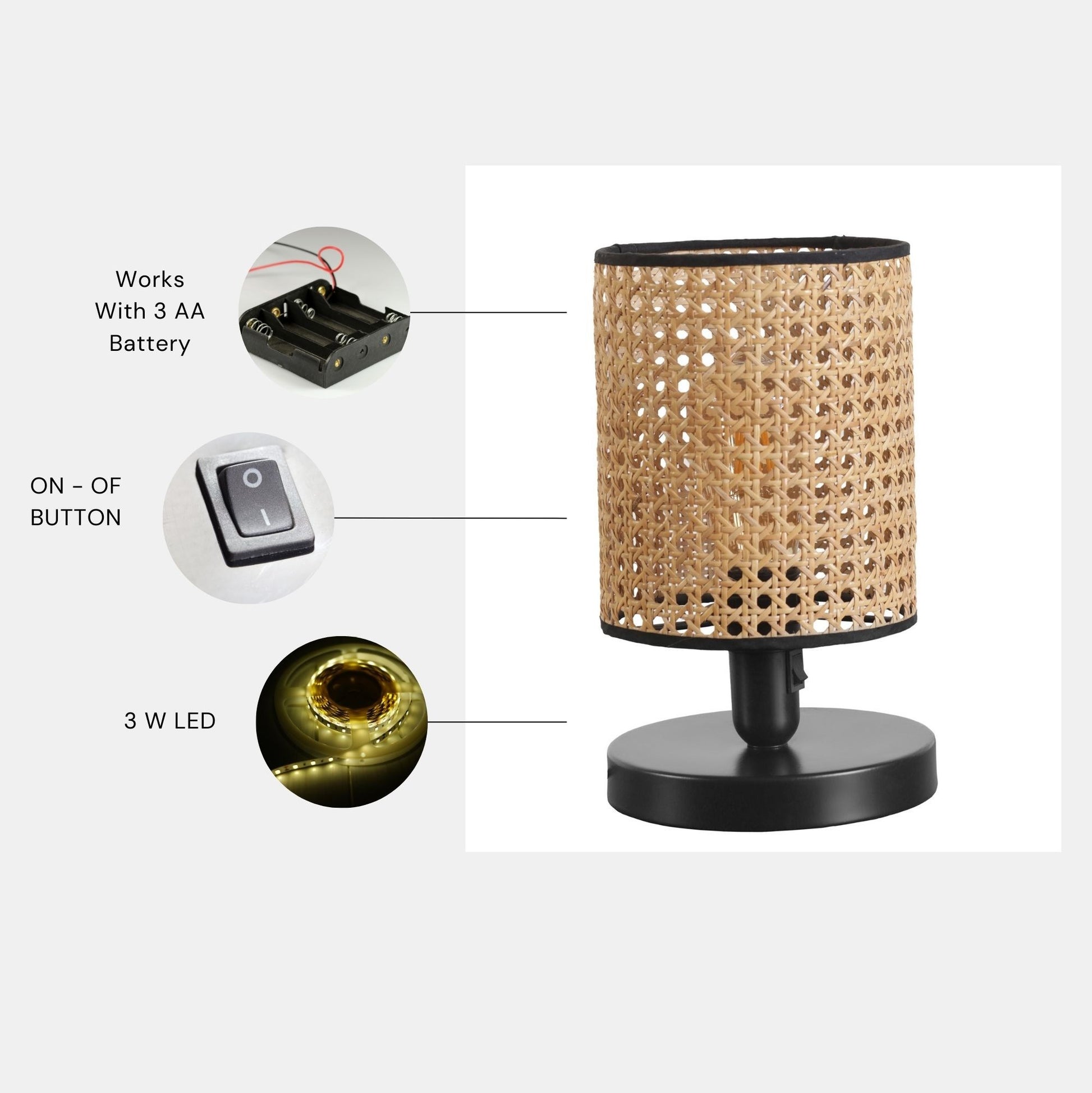 Com um tipo de tomada de 1 led de 3,15 W, este candeeiro de mesa proporciona uma fonte de luz brilhante e eficiente em termos energéticos. Funciona com 3 pilhas aa, o que lhe dá a flexibilidade de o colocar em qualquer parte da sua casa sem necessidade de uma tomada eléctrica. A temperatura de cor de 4500k cria um brilho quente e convidativo, perfeito para criar um ambiente acolhedor.