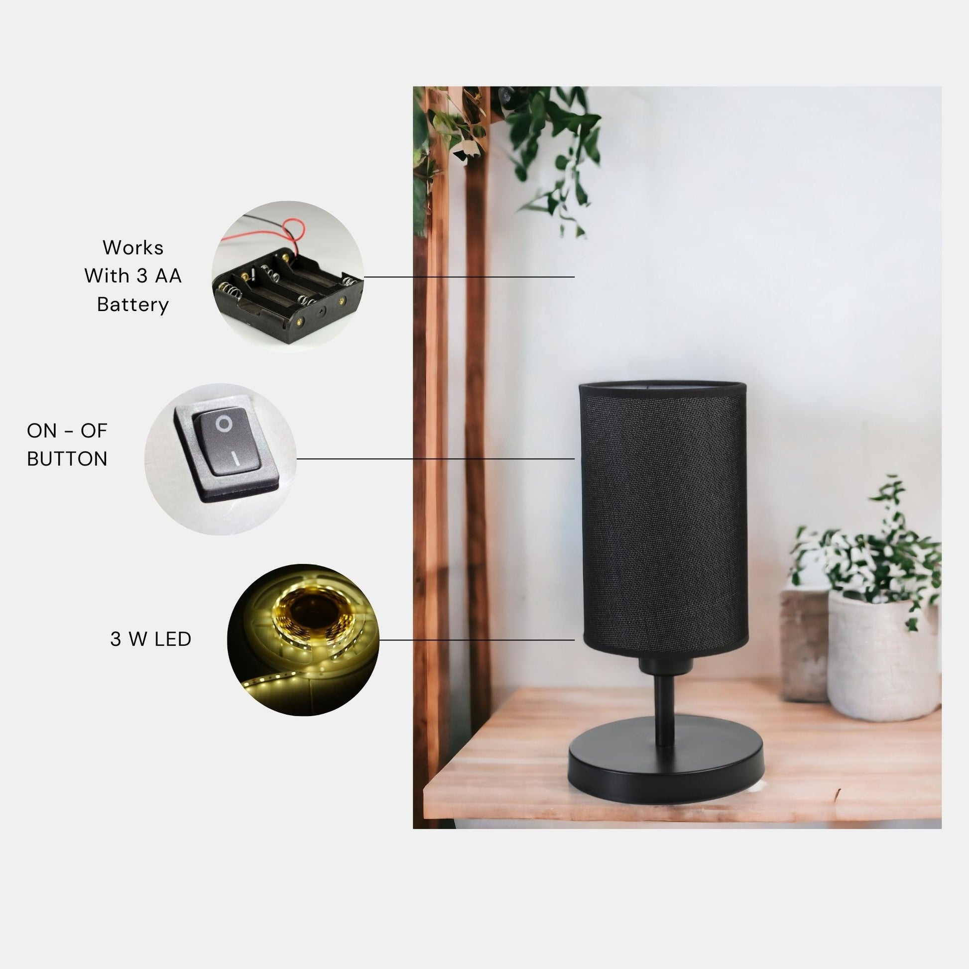A cor preta do candeeiro dá um toque de sofisticação a qualquer espaço, tornando-o uma peça versátil que complementa uma variedade de estilos de decoração. O tamanho compacto do candeeiro torna-o perfeito para mesas de cabeceira, secretárias ou qualquer outra superfície que necessite de um toque de luz.