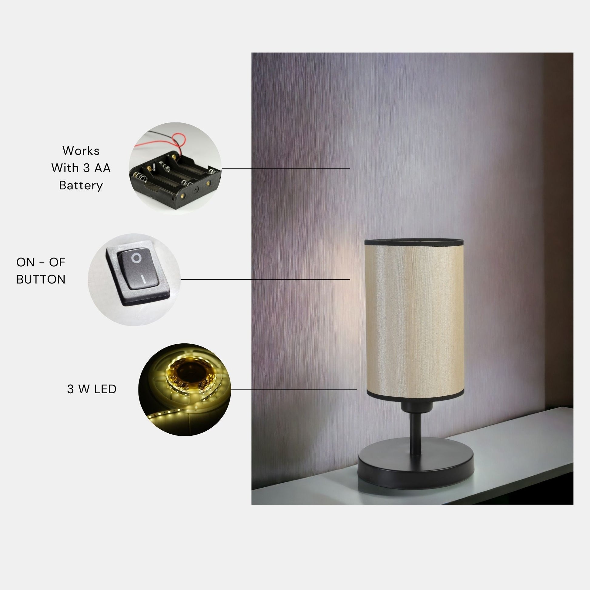 O candeeiro de mesa com corpo metálico foi concebido para complementar qualquer estilo de decoração, do moderno ao tradicional. O seu tamanho compacto torna-o ideal para espaços pequenos, enquanto o corpo metálico robusto garante durabilidade durante anos. A tampa em tecido dá um toque suave ao design geral, criando uma atmosfera acolhedora onde quer que seja colocado.