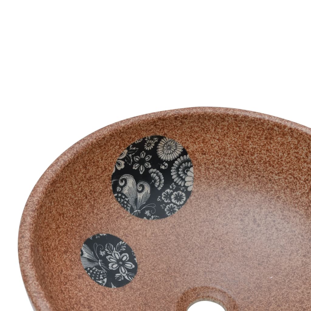 Lavatório de bancada redondo Φ41x14 cm cerâmica castanho e azul
