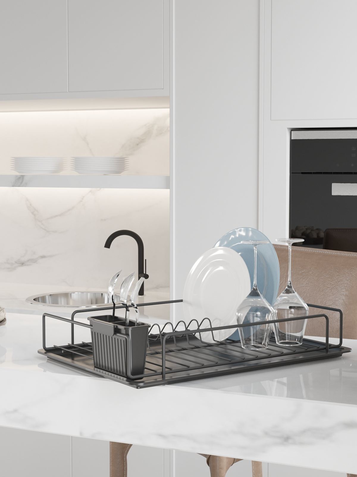 Com sua cor preta elegante, este escorredor de pratos adicionará um toque de sofisticação à sua cozinha. Não só é funcional, mas também fica ótimo na sua bancada.