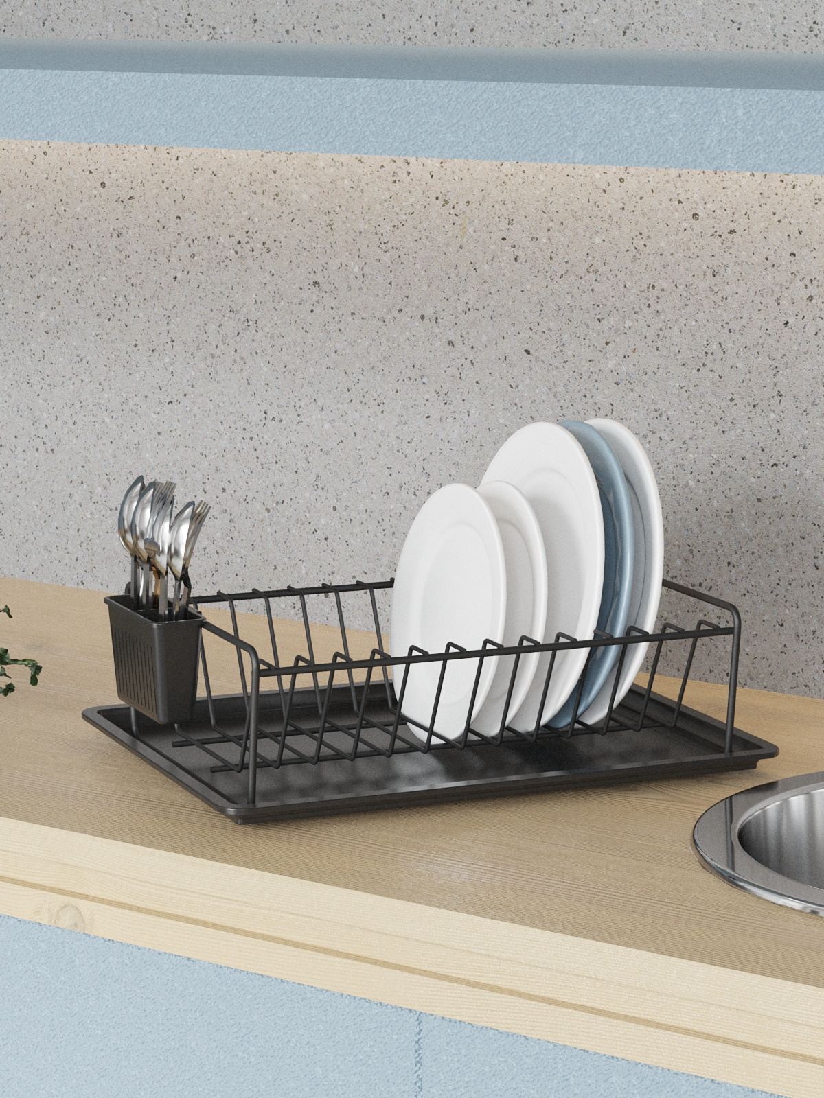 A cor preta elegante deste suporte para pratos dá um toque de sofisticação a qualquer decoração de cozinha. O seu design minimalista combina na perfeição com qualquer estilo, tornando-o um complemento perfeito para cozinhas modernas e tradicionais. Melhore a estética da sua cozinha, mantendo-a arrumada e organizada.