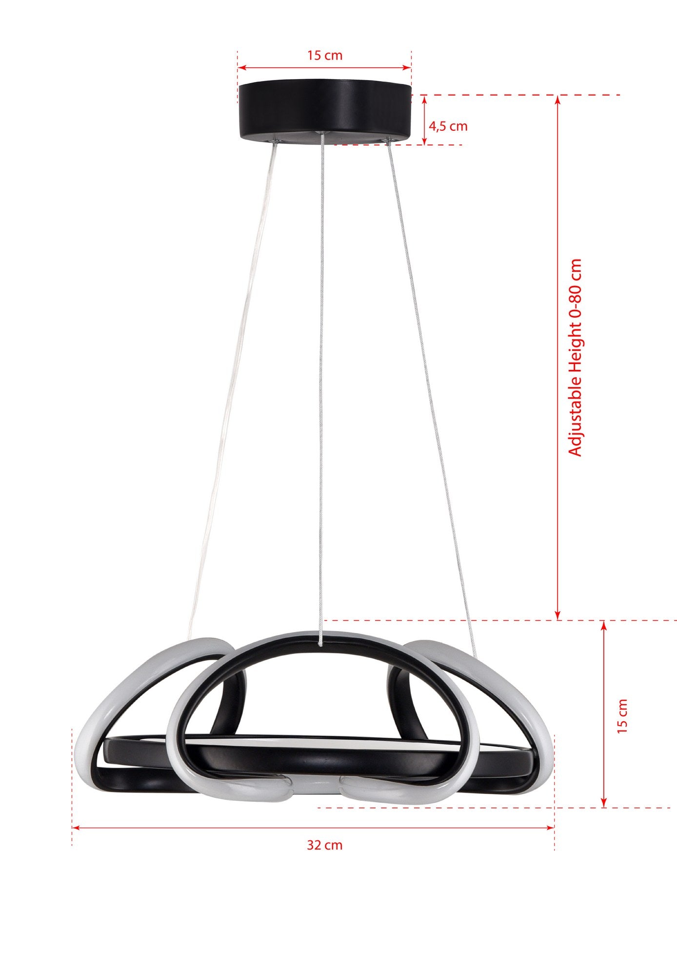 Feito de alumínio de alta qualidade, este lustre não é apenas estiloso, mas também durável. As luzes LED de 60-80 watts fornecem iluminação suficiente para qualquer ambiente, enquanto a cor preta adiciona um toque moderno à sua decoração.