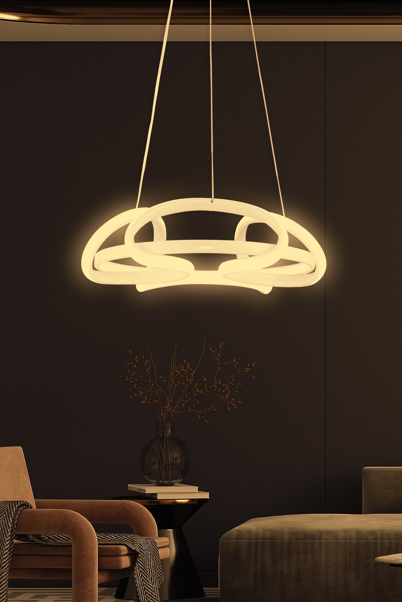 O design elegante deste lustre, combinado com seu recurso de altura ajustável, permite que você personalize a iluminação para se adequar perfeitamente ao seu espaço. A pintura branca com revestimento eletrostático adiciona um toque moderno, enquanto a luz amarela LED 4000K proporciona um brilho suave e acolhedor.