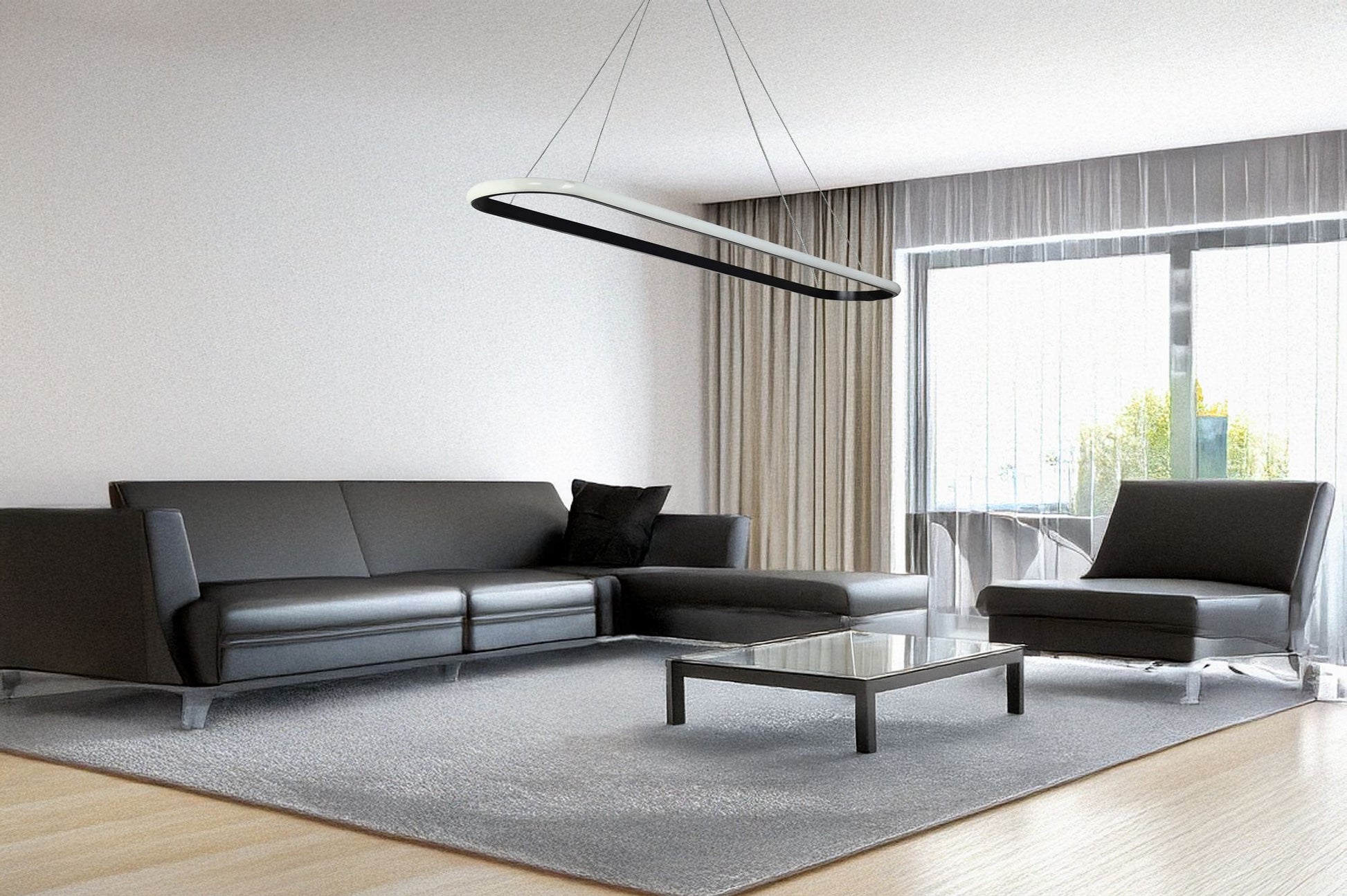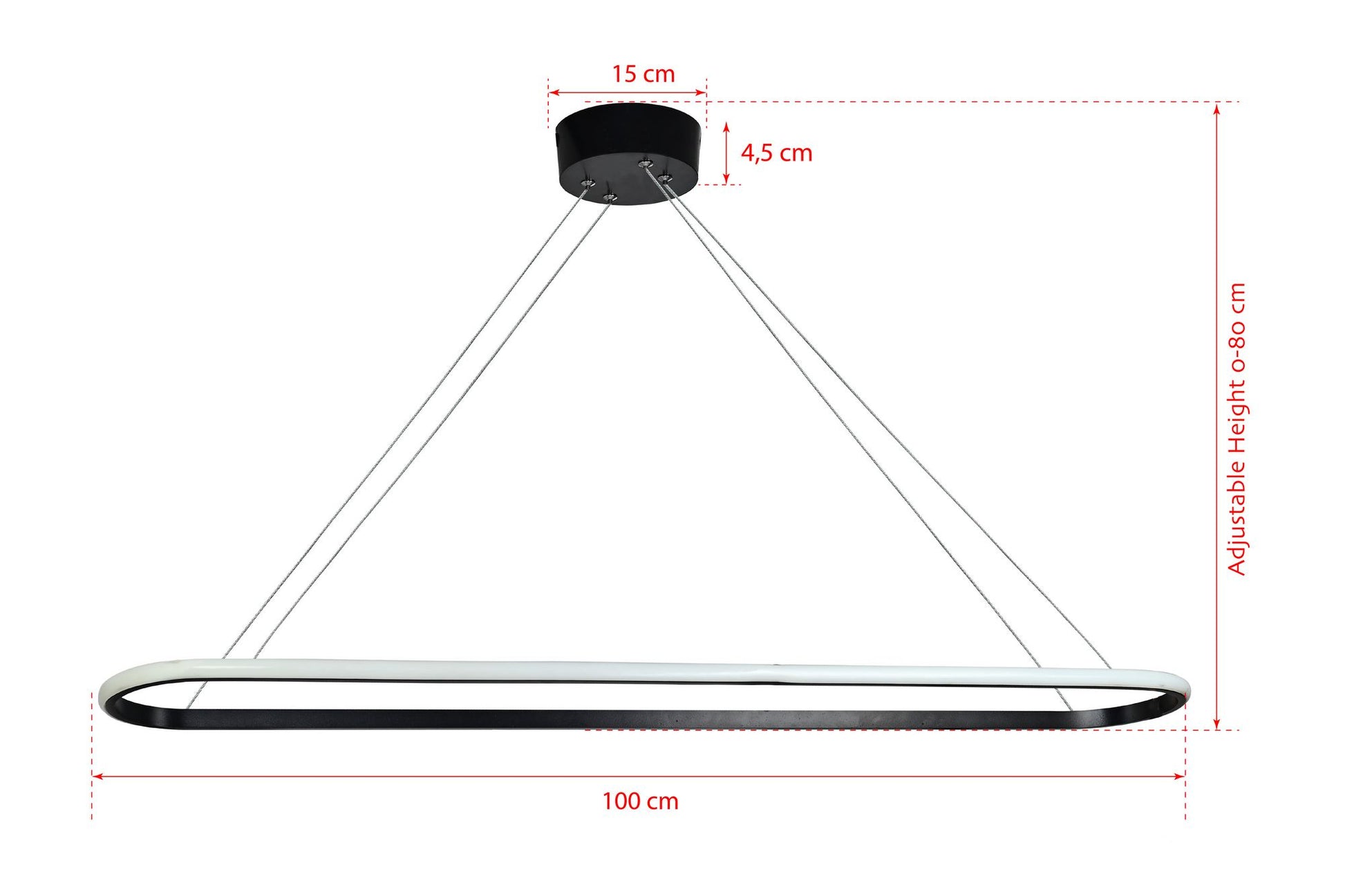 Candeeiro de Teto – 100 x 15 x 2 cm – Preto – Alumínio