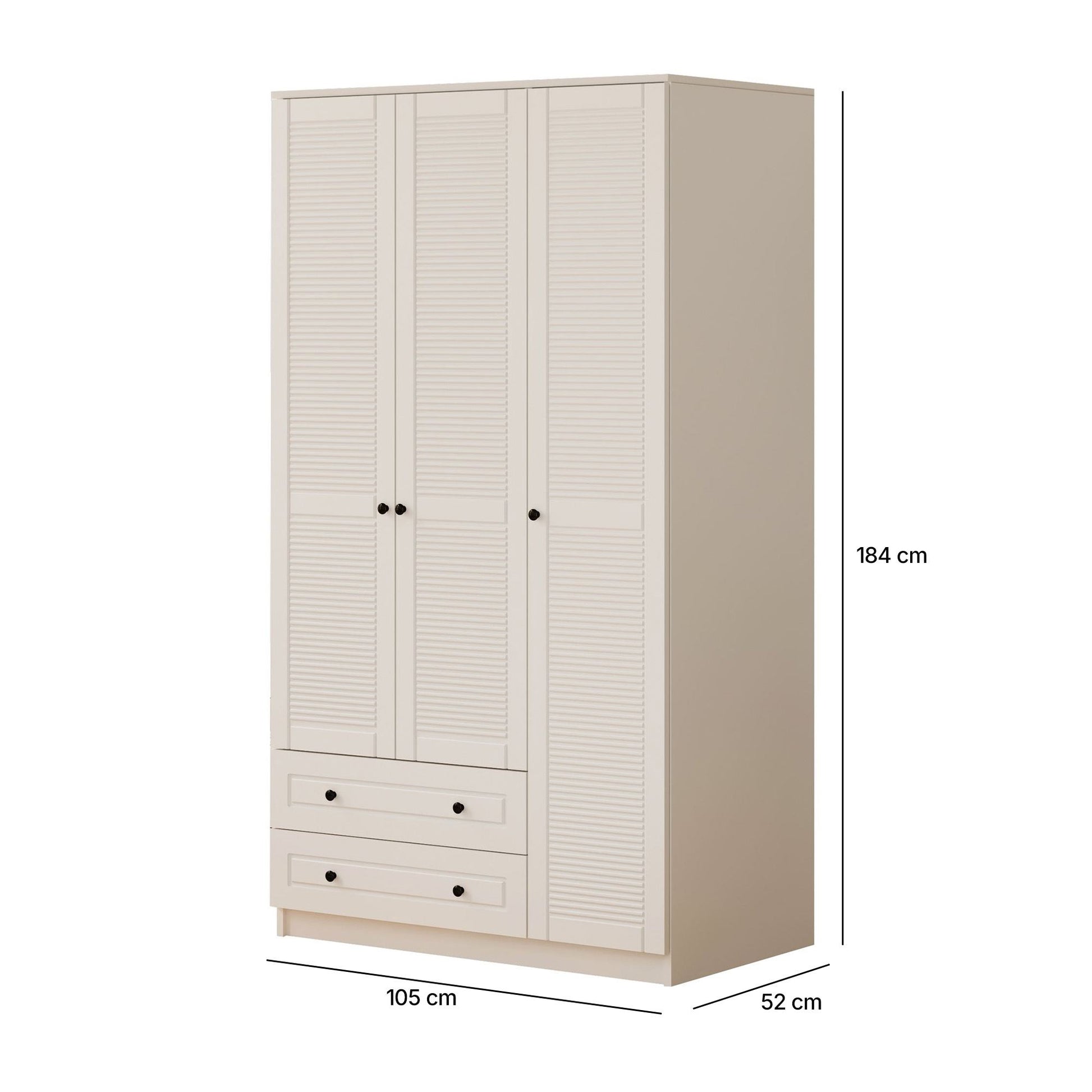 Feito de aglomerado de qualidade E1 revestido com 100% de melamina, este guarda-roupa é projetado para suportar o uso diário e manter sua beleza por muitos anos. A porta com revestimento de membrana de MDF adiciona um toque de elegância, enquanto o cabide de metal e a borda de PVC garantem durabilidade.