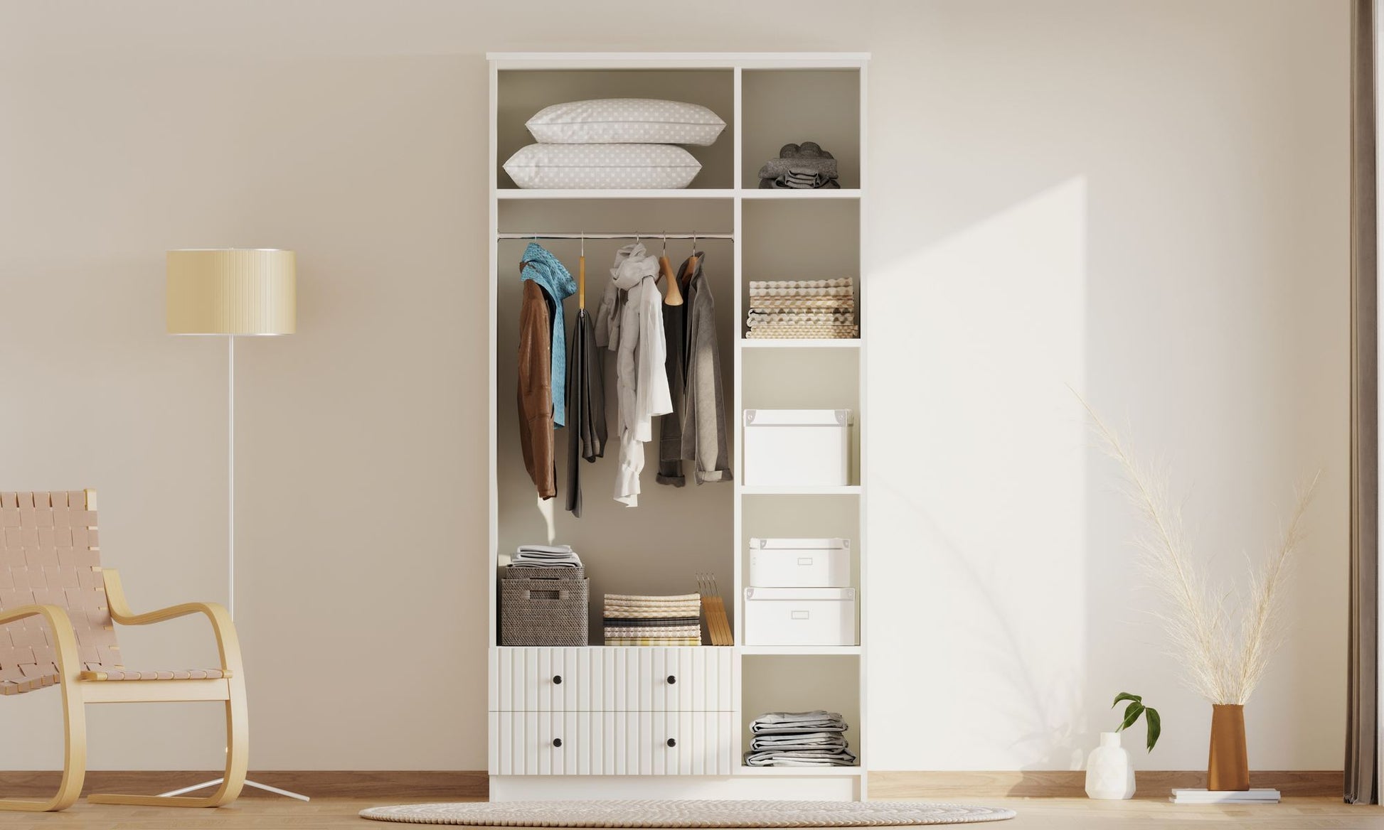 Está cansado de armários bagunçados e gavetas transbordando? Diga adeus ao caos e olá à organização com nosso deslumbrante guarda-roupa!