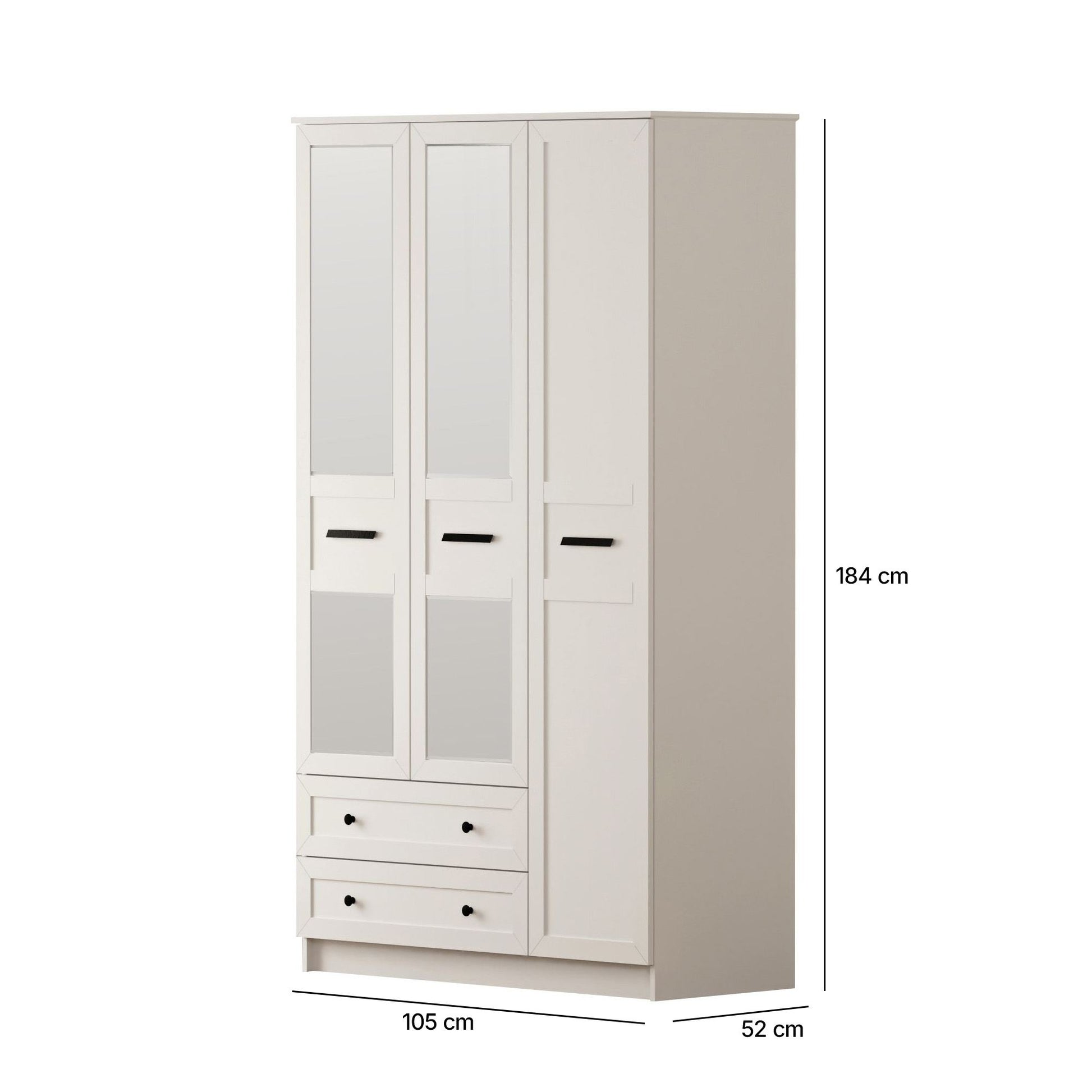 Feito de aglomerado de qualidade E1 revestido com 100% de melamina, este guarda-roupa é não apenas durável, mas também estiloso. As portas com perfil de MDF e a borda de PVC de 0,8 mm adicionam um toque de elegância a qualquer ambiente, enquanto a cor branca fosca complementa qualquer decoração.