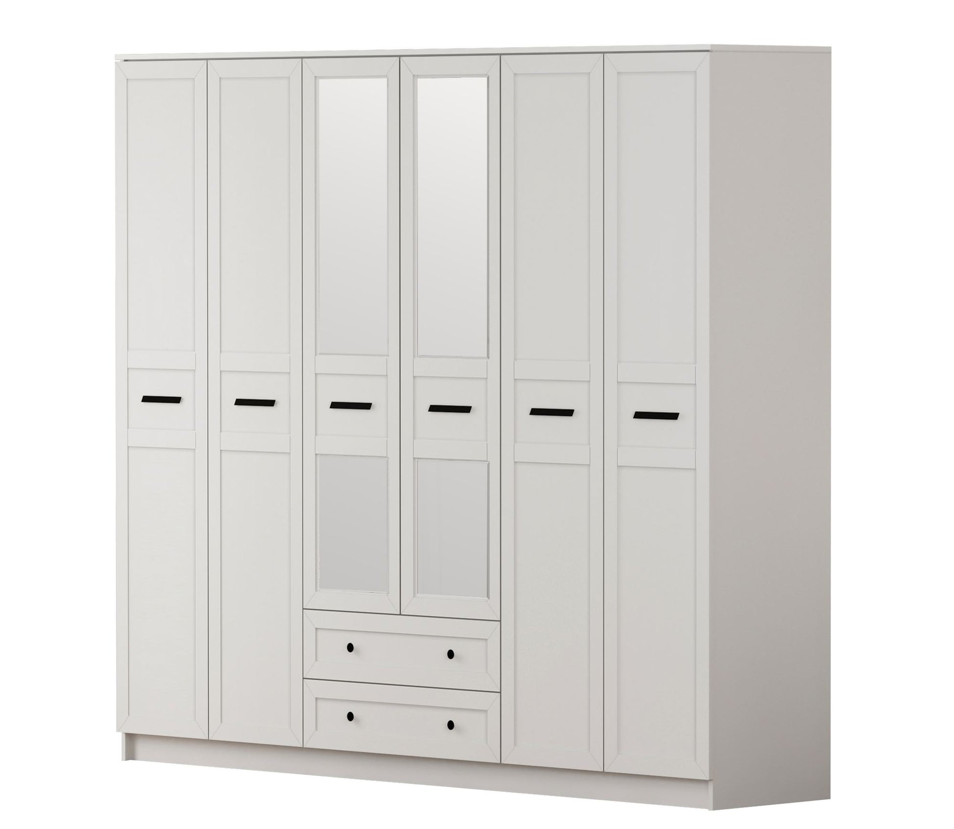 Feito de aglomerado de qualidade E1 revestido em 100% melamina, este guarda-roupa foi projetado para durar. As portas com perfil de MDF e a borda de PVC de 0,8 mm adicionam um toque de elegância enquanto garantem durabilidade. Você pode confiar que este guarda-roupa resistirá ao teste do tempo.