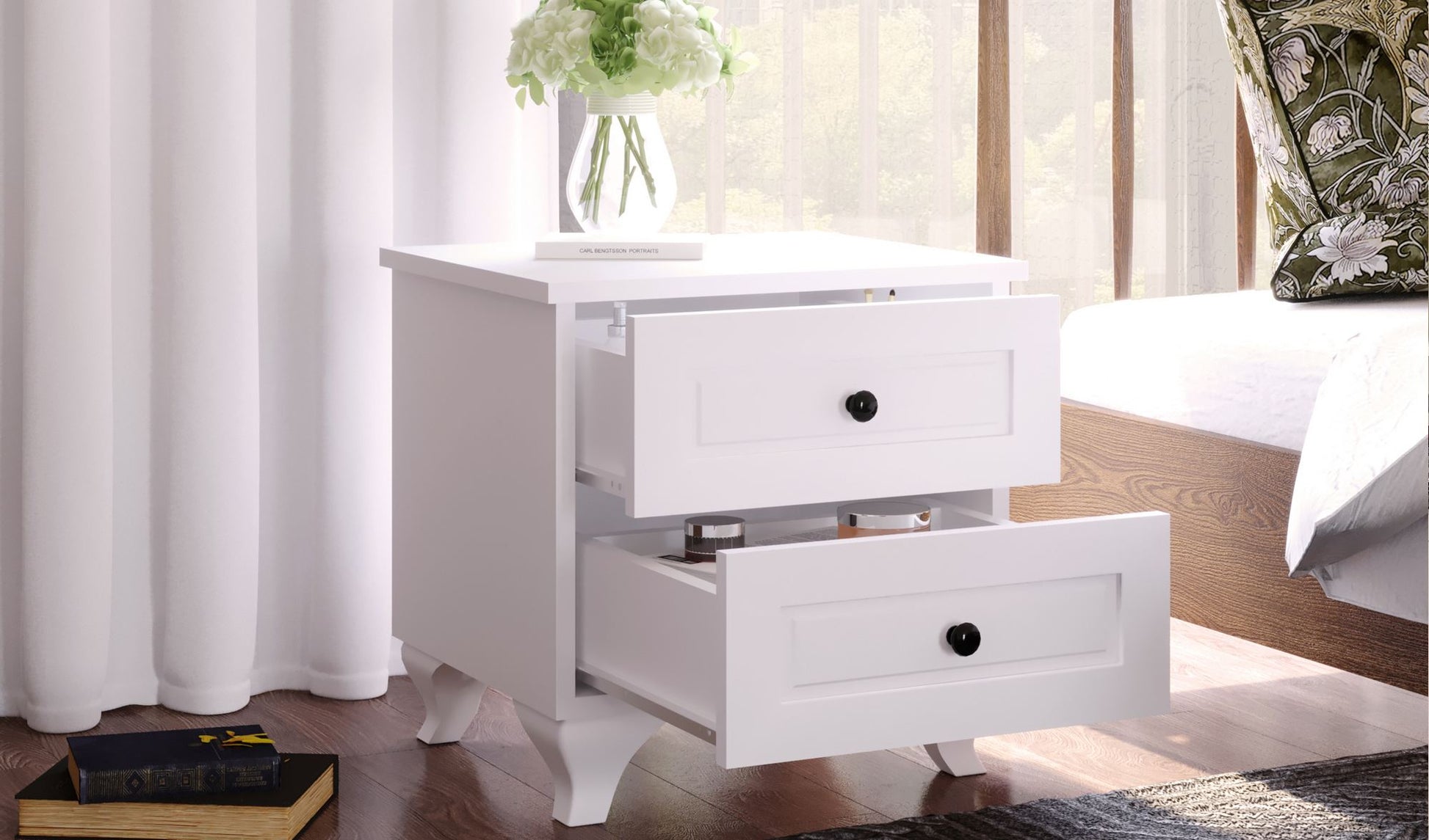 - Dimensões da mesa de cabeceira: Largura: 45 cm, Altura: 45 cm, Profundidade: 40 cm