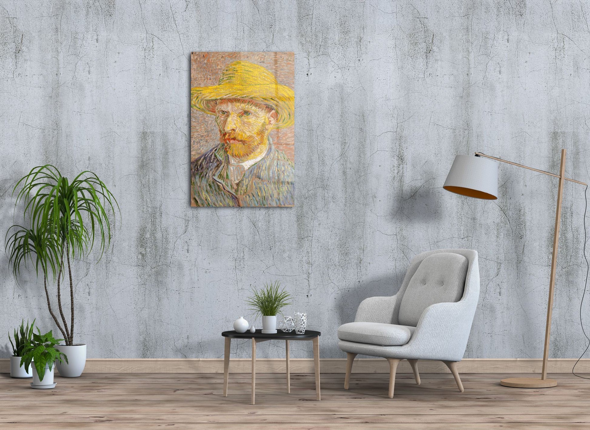Transforme o seu espaço com uma obra-prima reimaginada! Este magnífico quadro decorativo apresenta o icónico auto-retrato de Van Gogh, reproduzido com qualidade museológica em acrílico óptico premium.