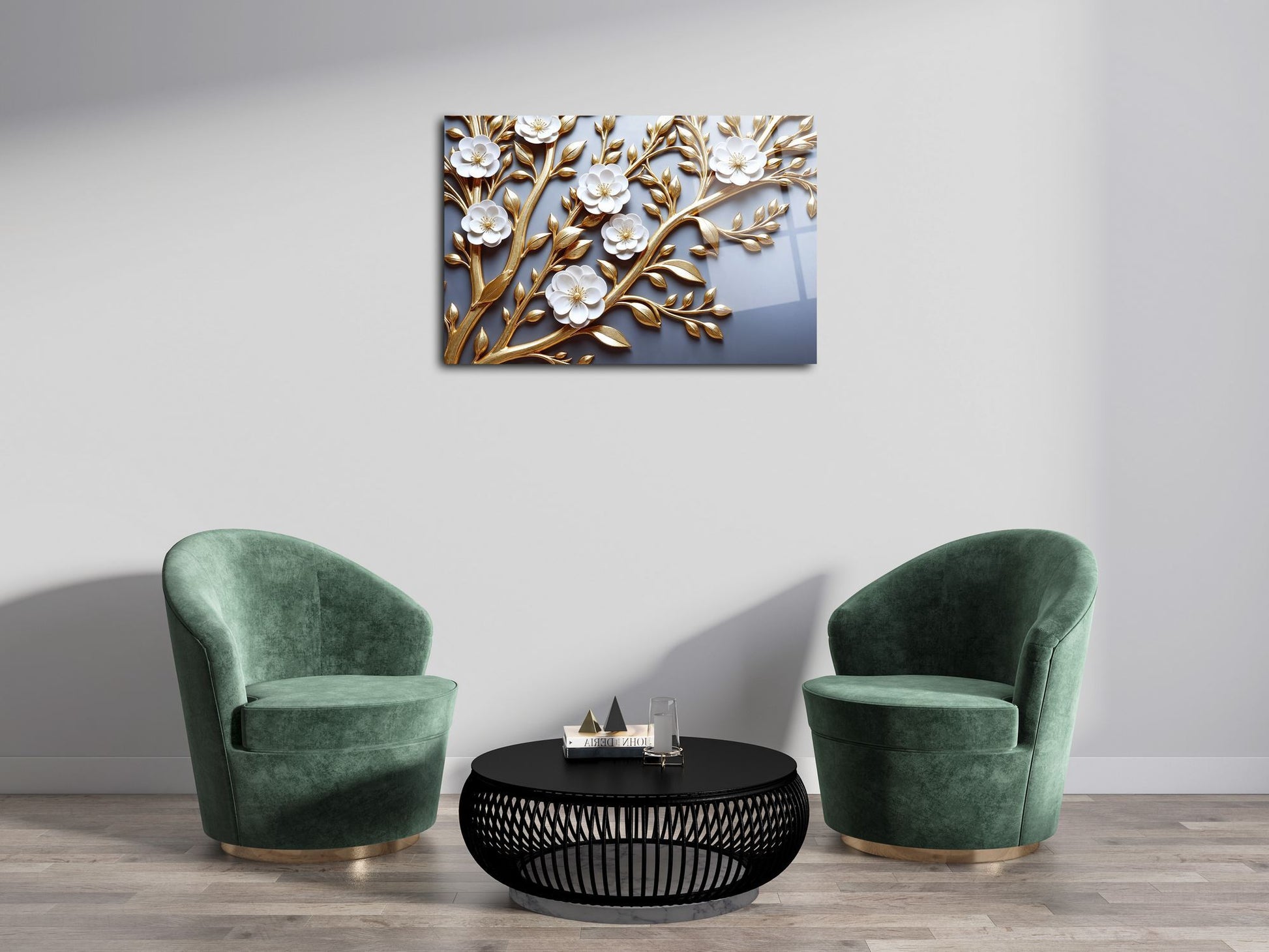 Golden Blossoms - Quadro Decorativo em Vidro Acrílico