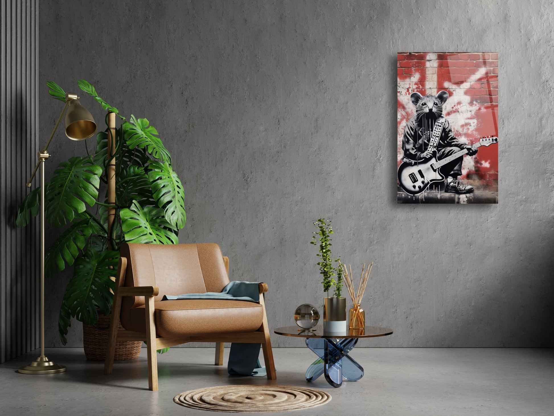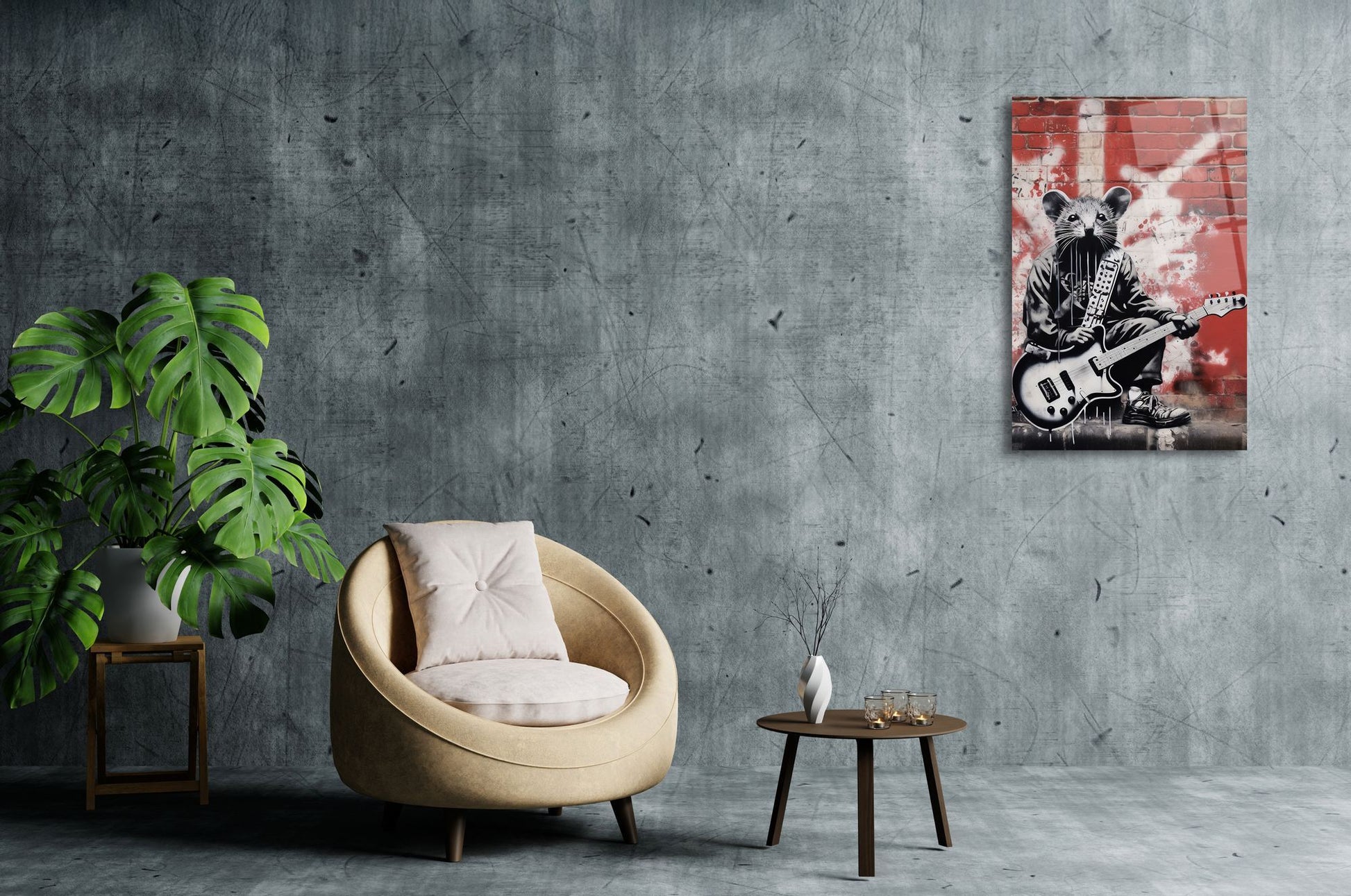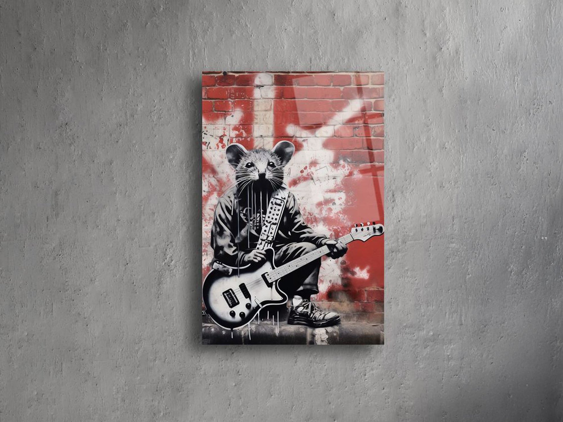 Quadro Decorativo Rockstar Mouse - Arte Moderna em Vidro Acrílico