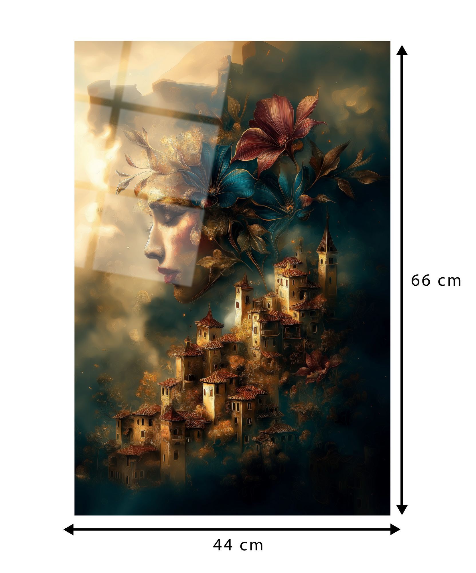 - Dimensões Ideais: 44 x 66 cm - tamanho perfeito para destacar sem sobrecarregar o ambiente