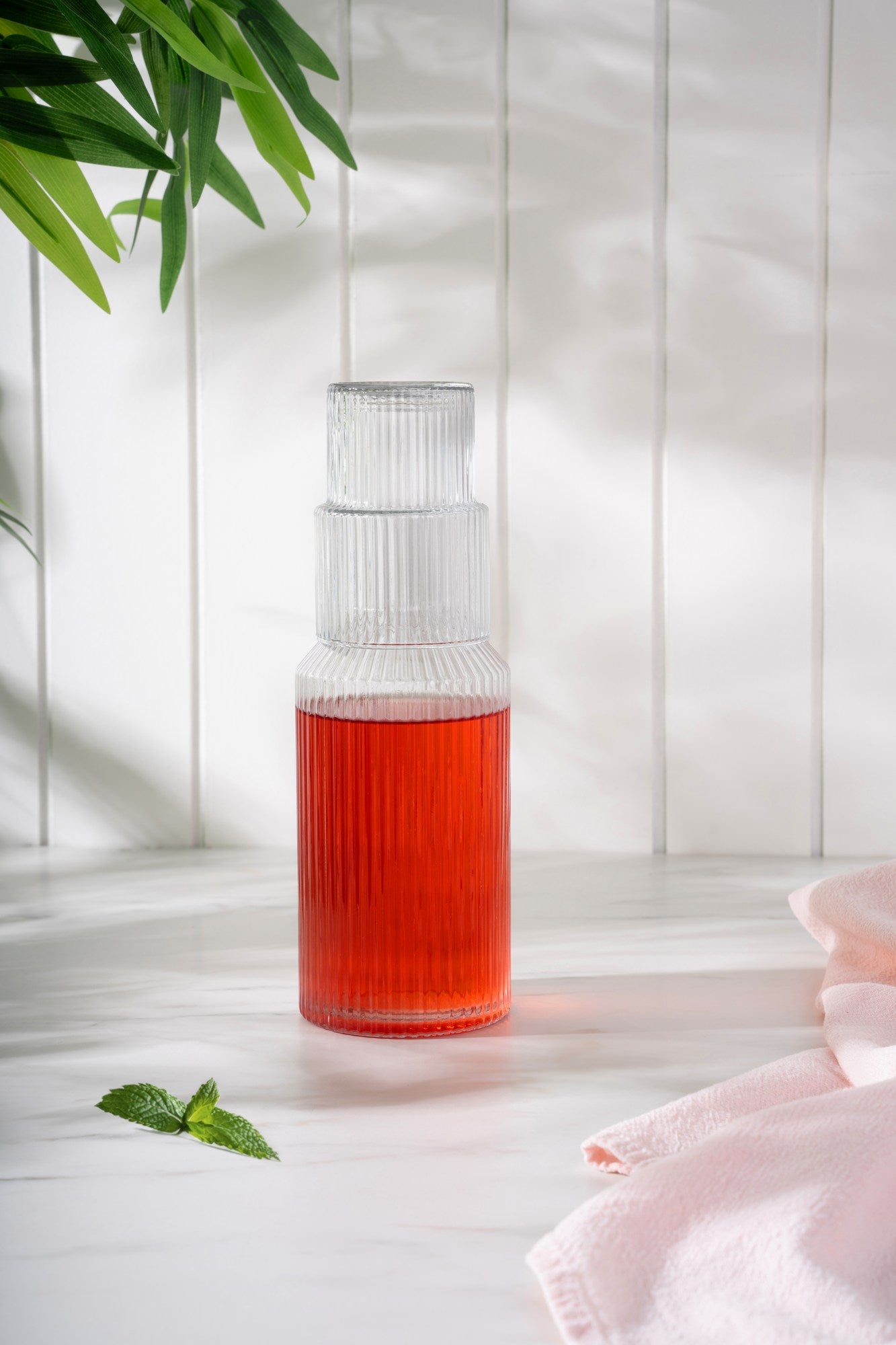 - Dimensões da garrafa de vidro: 10 x 10 x 26 cm