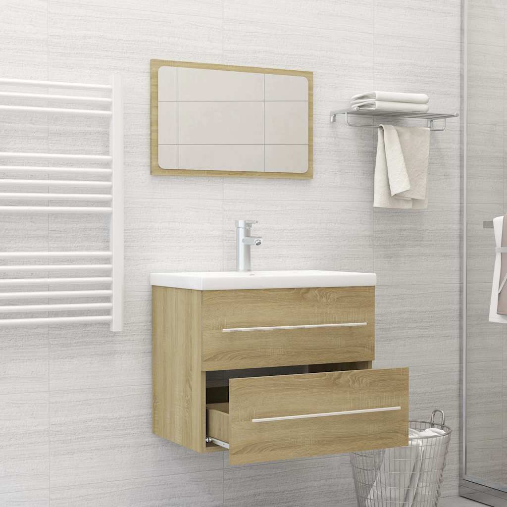 2 pcs conj. móveis casa banho derivados madeira branco/carvalho