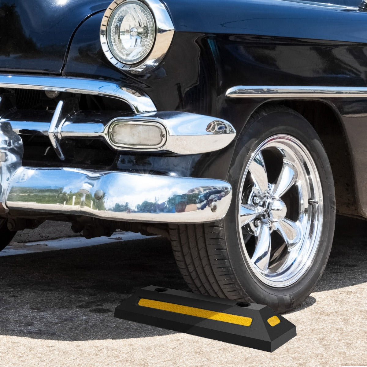 2 Topes de Estacionamento para Veículos na Garagem em Borracha Duráveis e Robustos com Faixas Refletoras