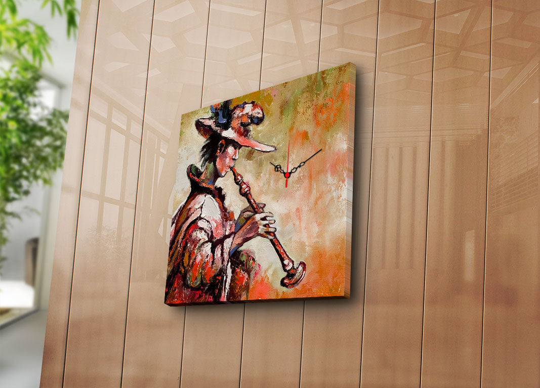 Relógio de Parede em Tela Suede Multicolor 45x45 cm com Moldura de Madeira 3 cm – 4545CS-22