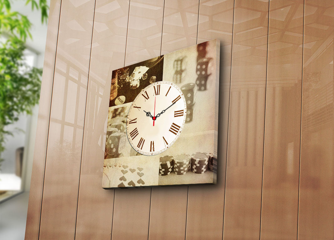 Relógio de Parede Decorativo Multicolor 45x45 cm em Tela Suede 100% com Moldura de Madeira 3 cm