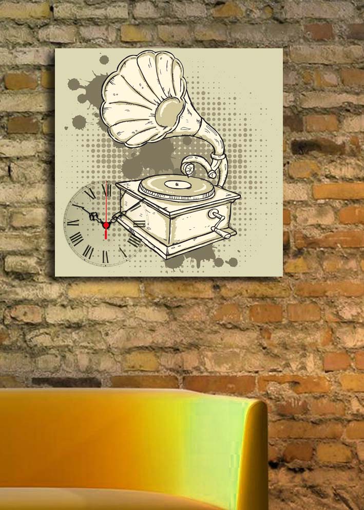 Relógio de Parede em Tela Decorativa Multicolor 45x45 cm | Tela Camurça 100% | Moldura de Madeira 3 cm (Ref. 4545CS-51)