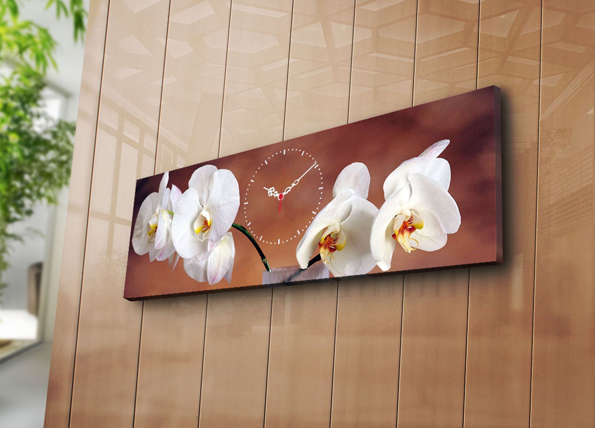 Relógio de Parede em Tela Suede (Canvas) 30x90 cm Multicolor com Moldura de Madeira 3 cm – Modelo 3090CS-28
