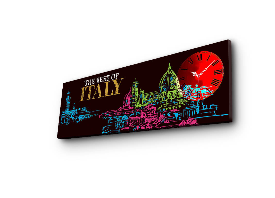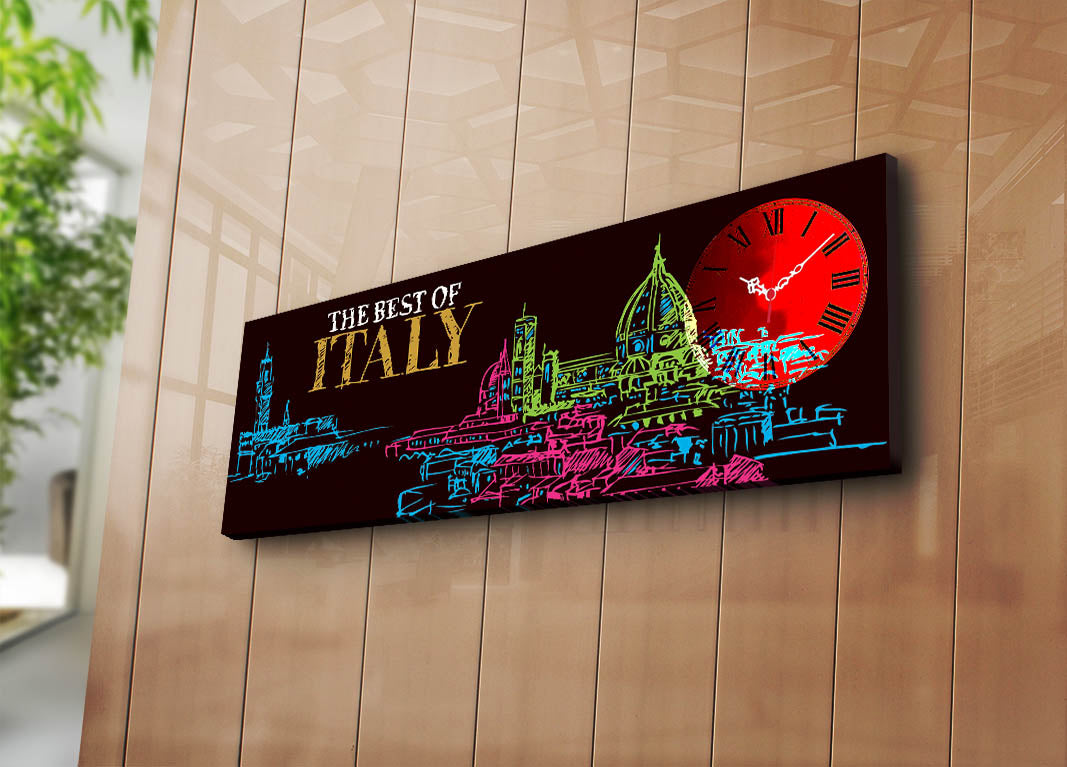 Relógio de Parede em Tela Decorativa Multicolor 30x90 cm – Suede 100% com Moldura de Madeira 3 cm (3090CS-36)
