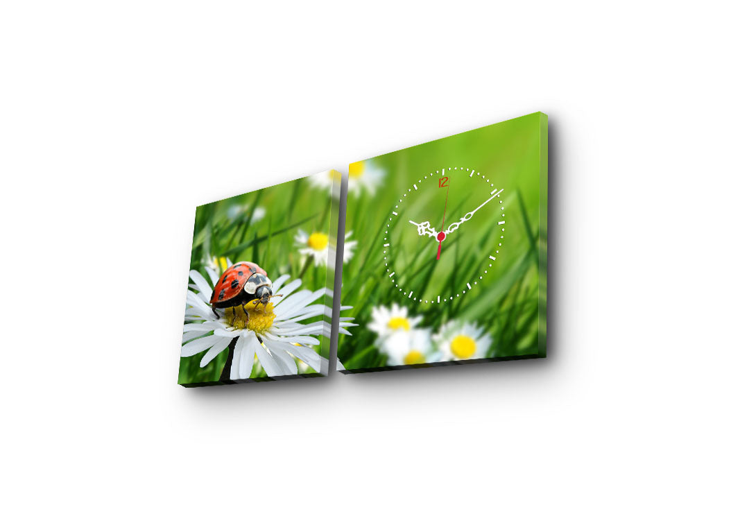Relógio de Parede Decorativo em Tela Suede – Multicolor, Conjunto 2 Peças (28x28 cm cada), Moldura de Madeira | 2P2828CS-2