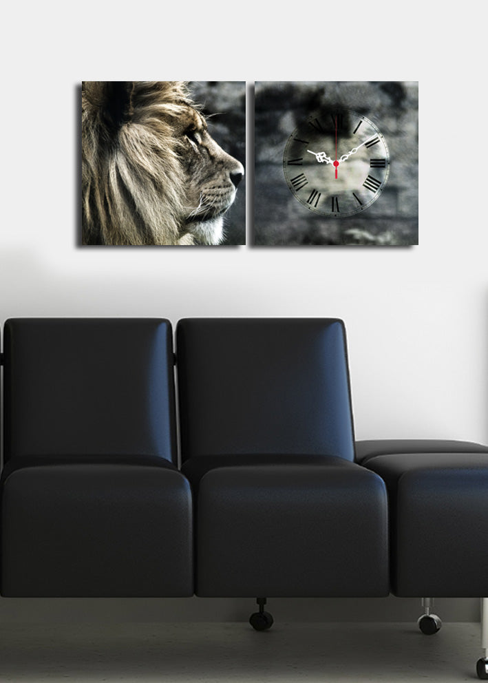 Relógio de Parede em Tela Decorativa - Conjunto de 2 Peças