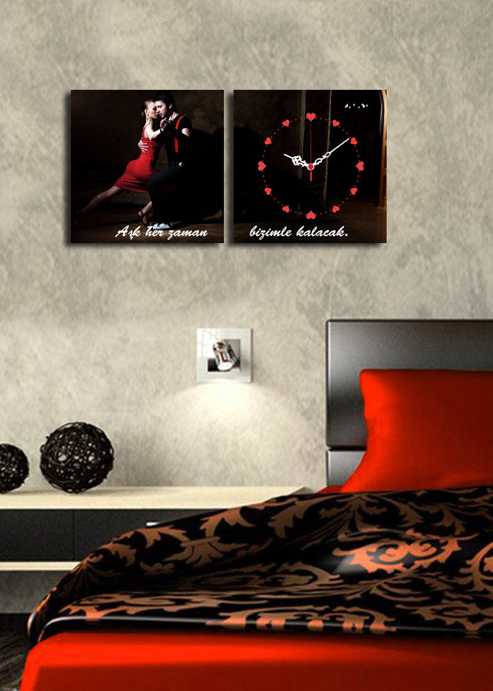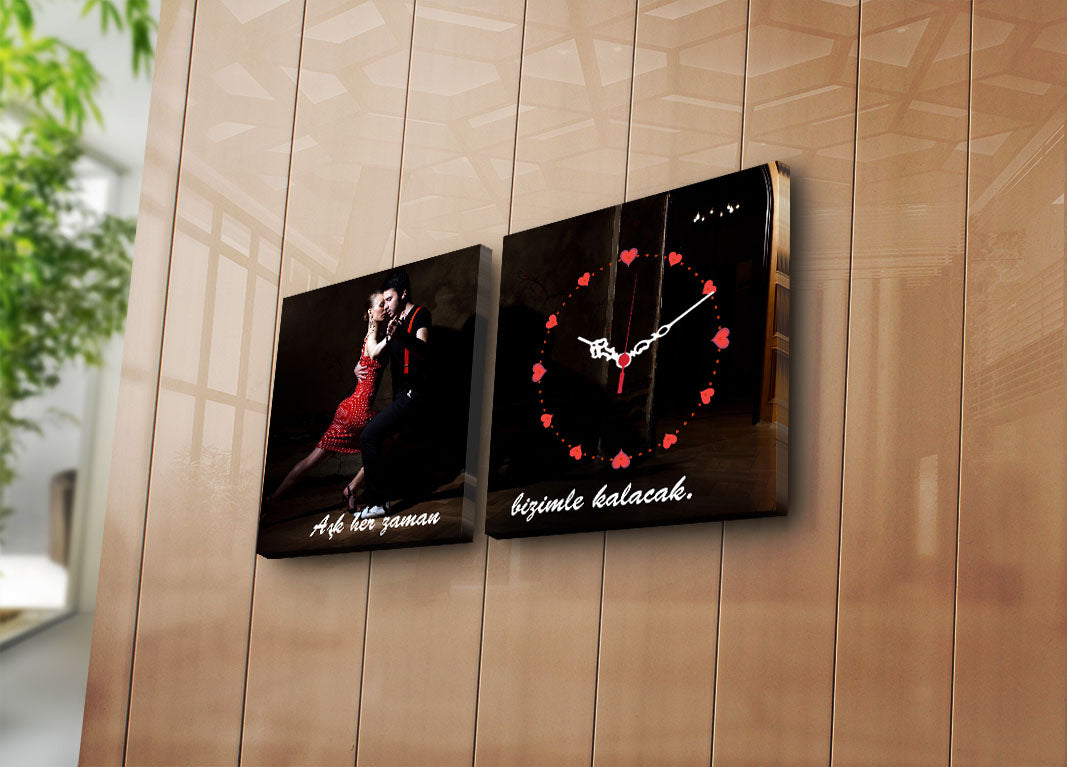 Relógio de Parede em Tela Suede Multicolor — Conjunto de 2 (28x28 cm cada), Total 60x28 cm, Moldura de Madeira 3 cm