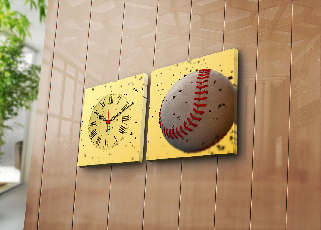 Relógio de Parede em Tela de Camurça 100% (Conjunto de 2), Multicolor, 28x28 cm cada, Total 60x28 cm, Moldura de Madeira 3 cm – 2P2828CS-17