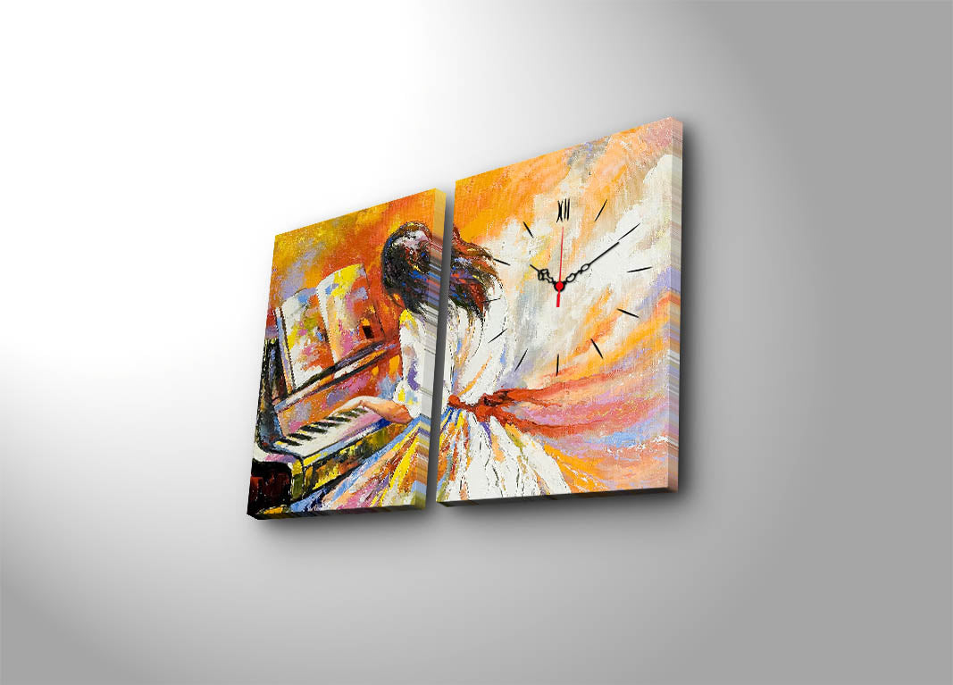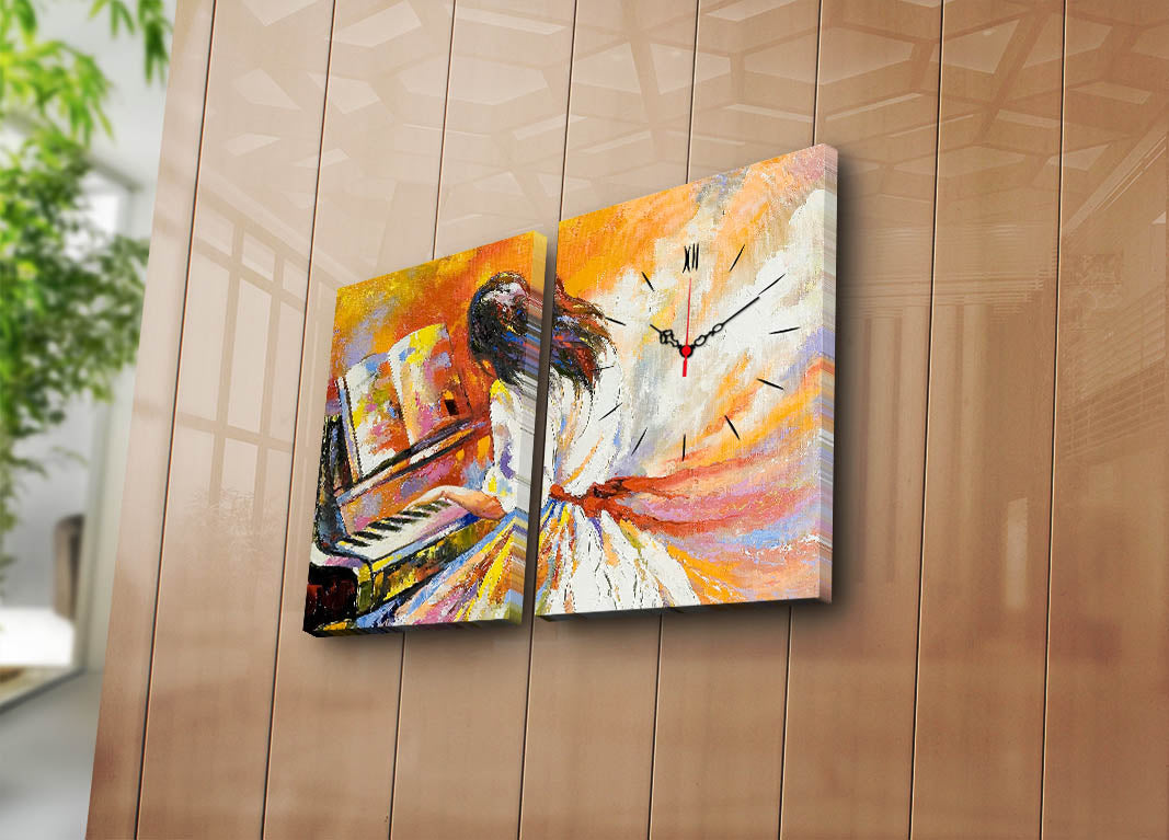 Relógio de Parede Decorativo em Tela Canvas (2 Peças)