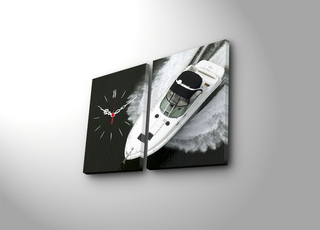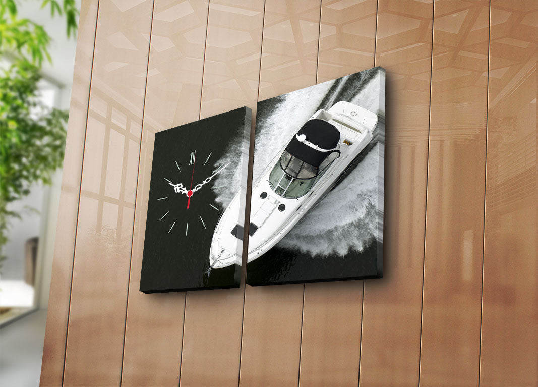 Relógio de Parede em Tela Suede Decorativa (2 Peças), Multicolor, Moldura de Madeira 3 cm, 64x40 cm