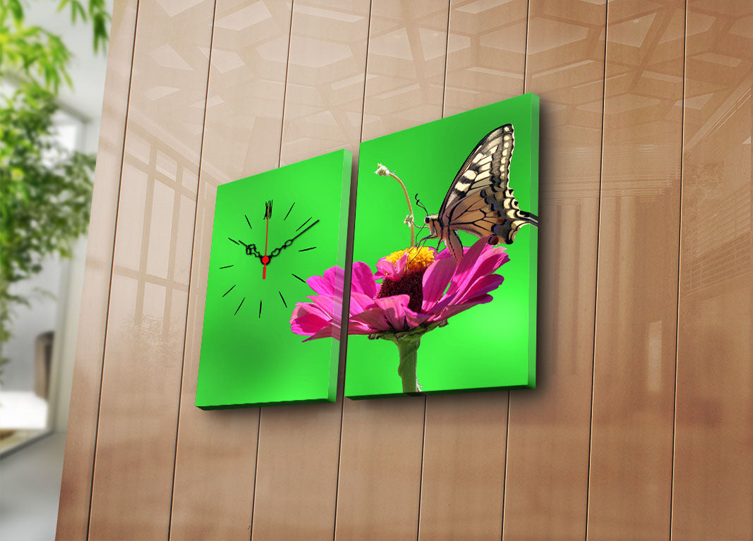 Relógio de Parede Decorativo em Tela Suede – Conjunto 2 Peças Multicolor, 30x40 cm (cada), Moldura de Madeira 3 cm