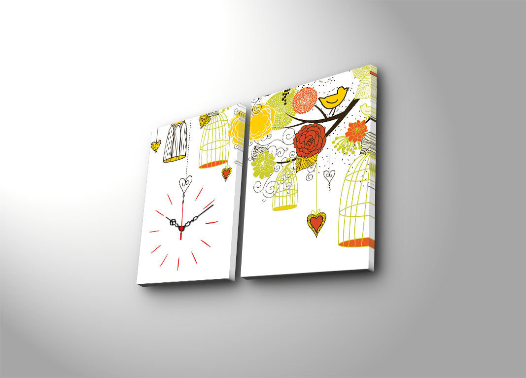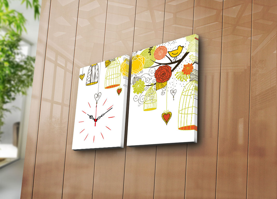 Relógio de Parede Decorativo em Tela - Conjunto de 2 Peças