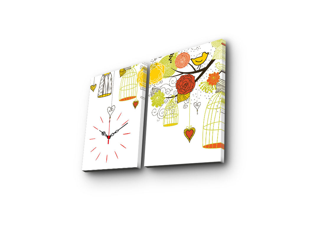 Relógio de Parede em Tela Suede Multicolor — Conjunto 2 Peças 30x40 cm (total 64x40 cm), Moldura de Madeira 3 cm (2P3040CS-132)