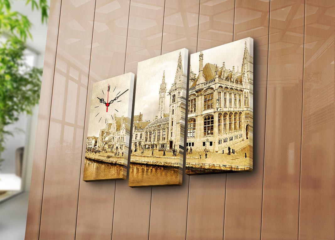 Relógio de Parede em Tela Decorativa (3 Peças) - Modelo 3PATCS-15