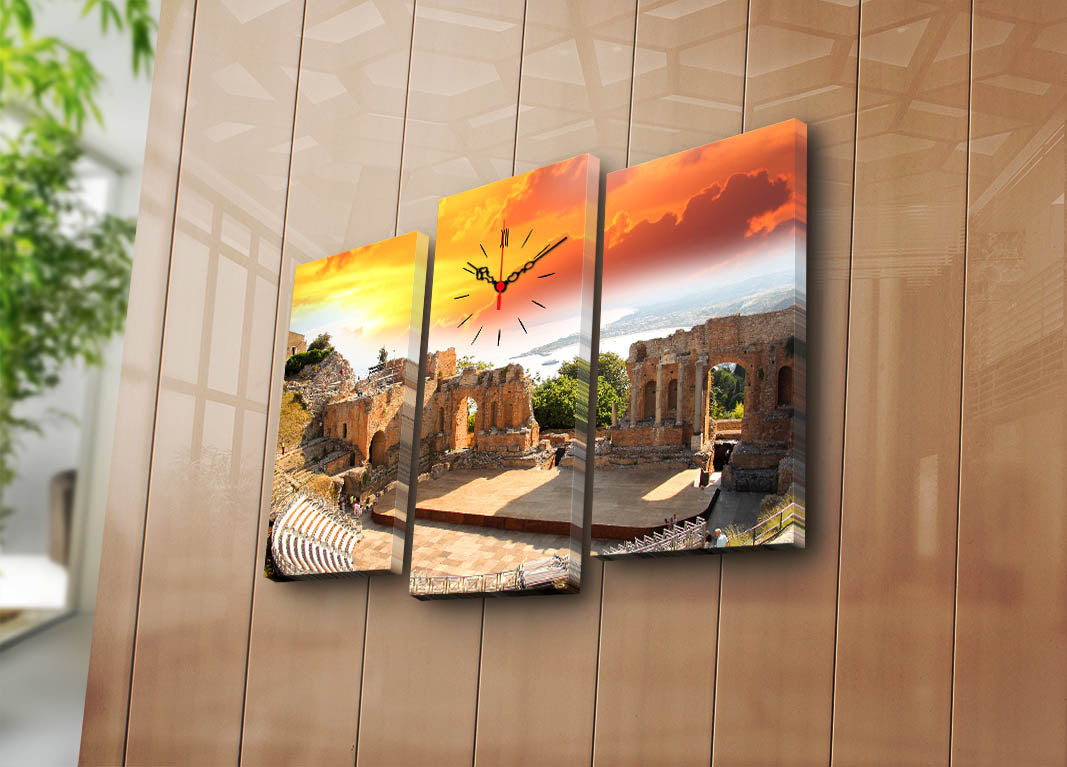 Relógio de Parede em Tela Decorativa Multicolor (3 Peças) – 3PATCS-23