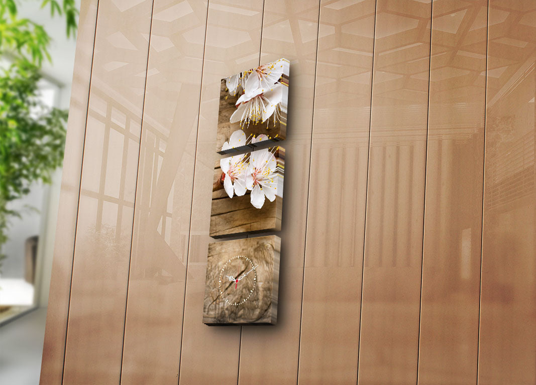 Relógio de Parede Decorativo em Tela – 3 Peças, Multicolor, 28x28 cm (cada), Total 90x28 cm, Tela Suede 100%, Moldura de Madeira 3 cm