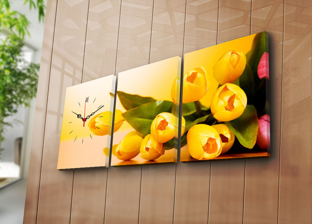 Relógio de Parede em Tela Decorativa Multicolor (3 Peças)