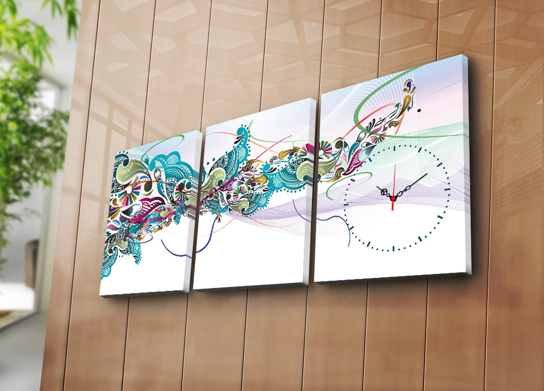 Relógio de Parede Decorativo em Tela de Camurça 100% (3 Peças) Multicolor – 30x40 cm cada, Moldura de Madeira