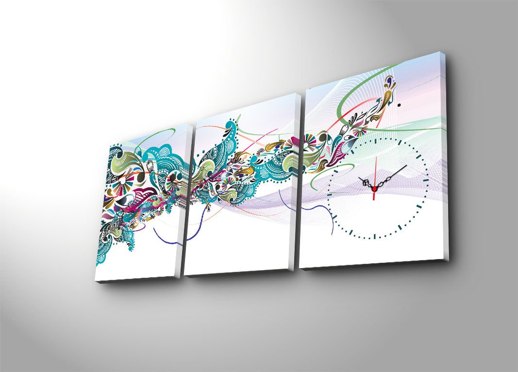 Relógio de Parede Decorativo em Tela - Conjunto de 3 Peças