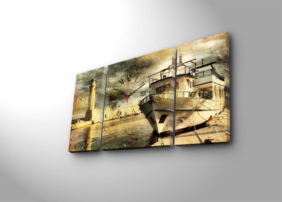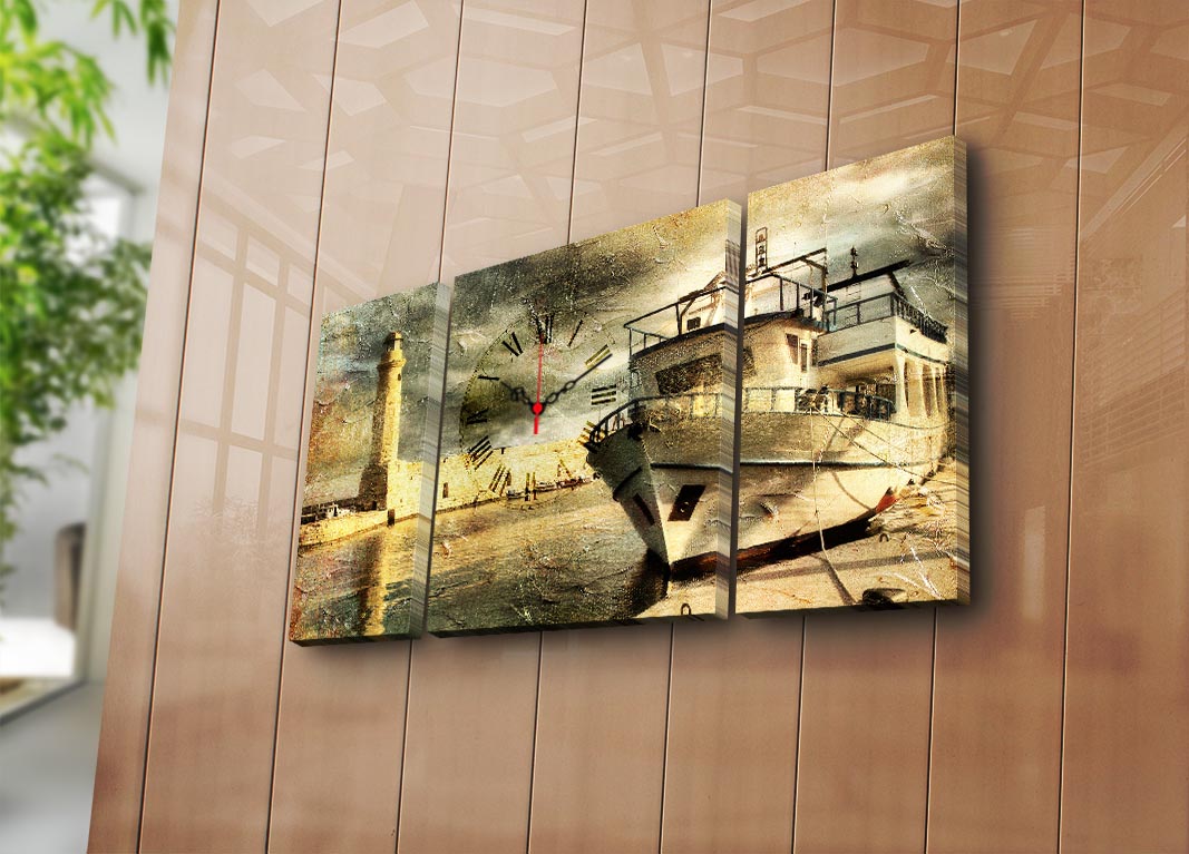 Relógio de Parede em Tela Suede — Conjunto de 3 Peças Multicolor com Moldura de Madeira