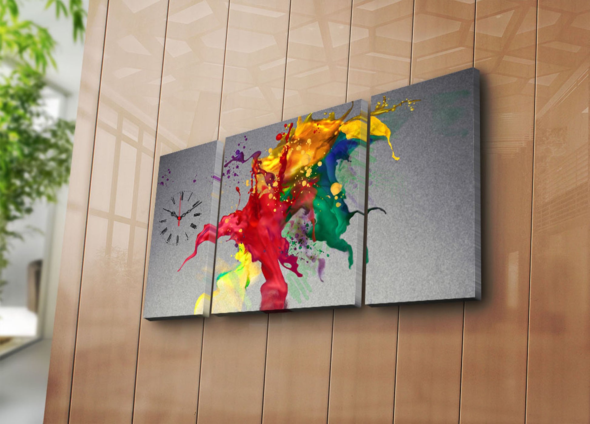 Relógio de Parede Decorativo em Tela Multicolor – Conjunto 3 Peças