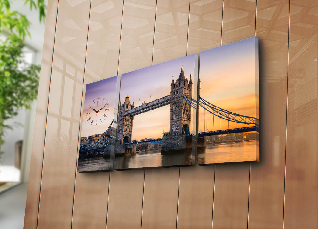 Relógio de Parede em Tela Decorativa, Multicolor, 3 Peças – 84x45 cm, Suede 100%, Moldura em Madeira (3 cm) | 3P204045CS-10