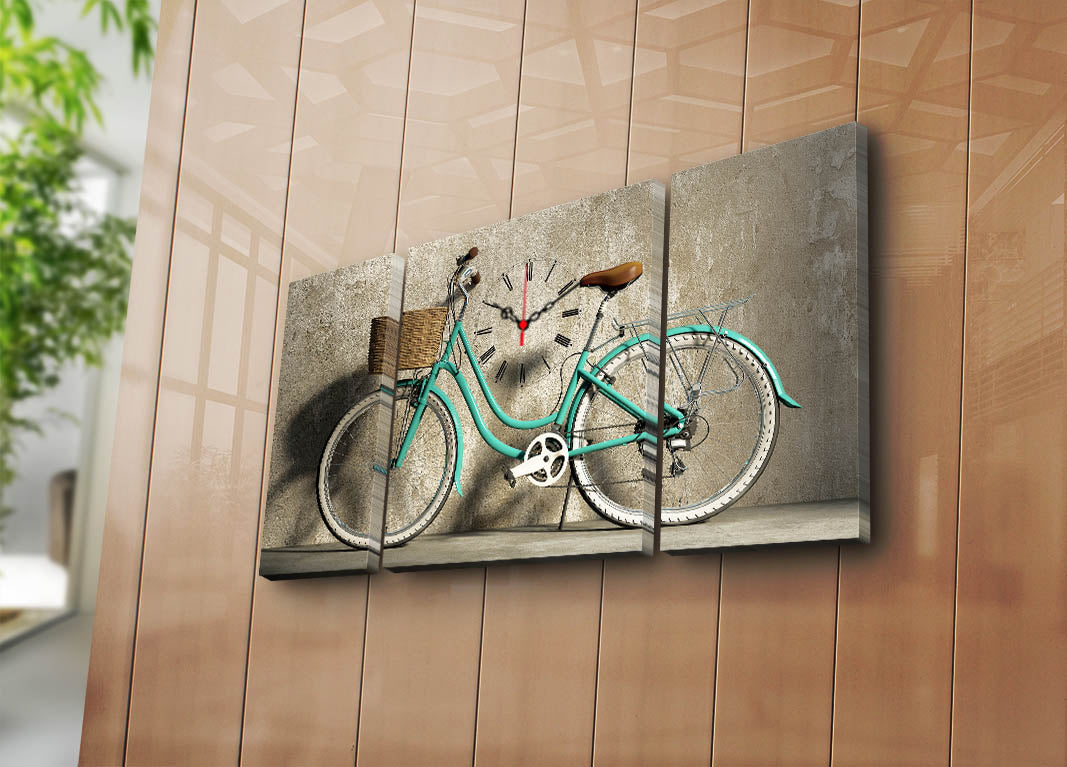 Relógio de Parede Decorativo em Tela Suede (3 Peças) — Multicolor, Moldura de Madeira, 84x45 cm