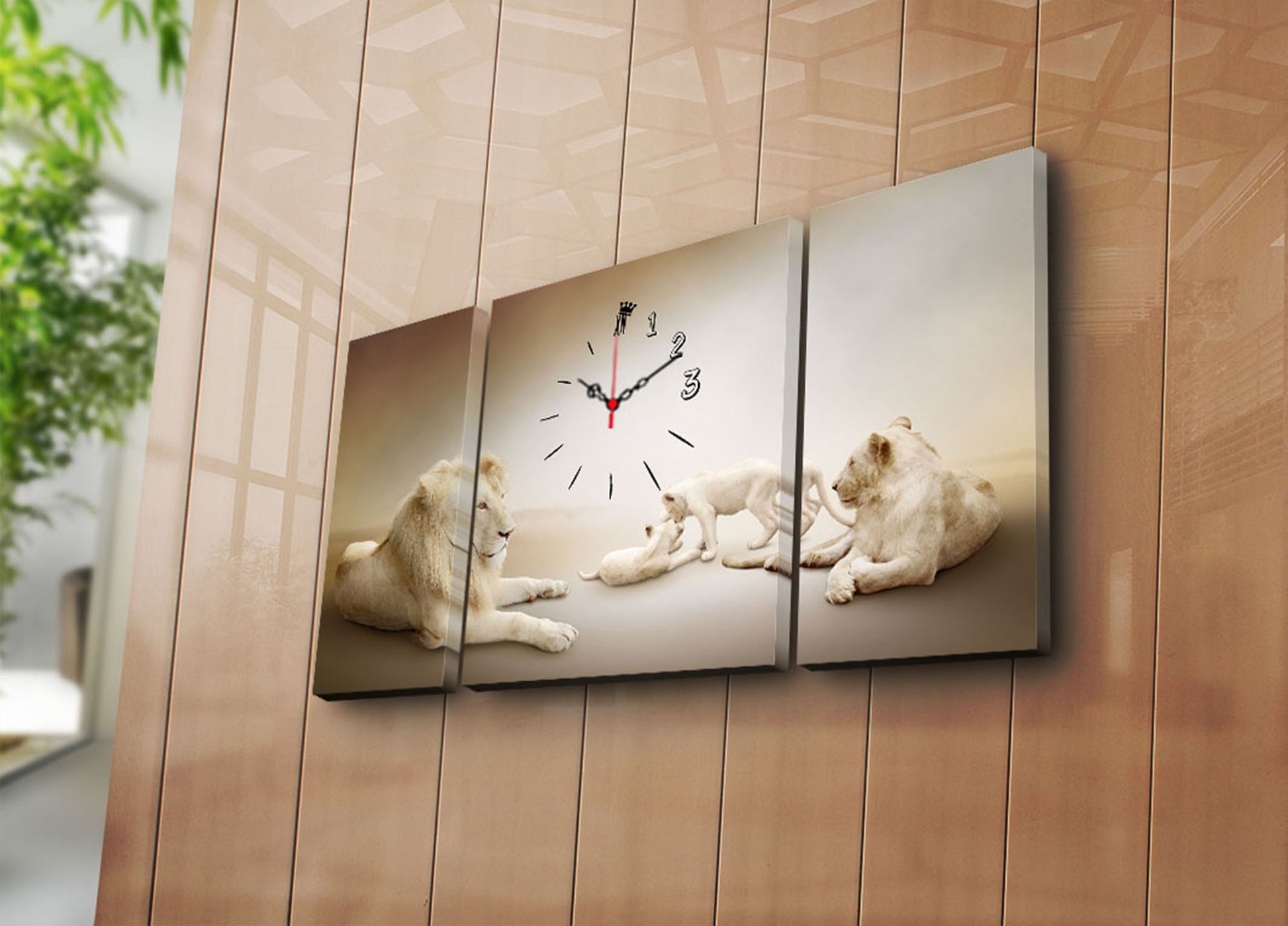Relógio de Parede em Tela Decorativa 3 Peças Multicolor – Suede 100% com Moldura de Madeira