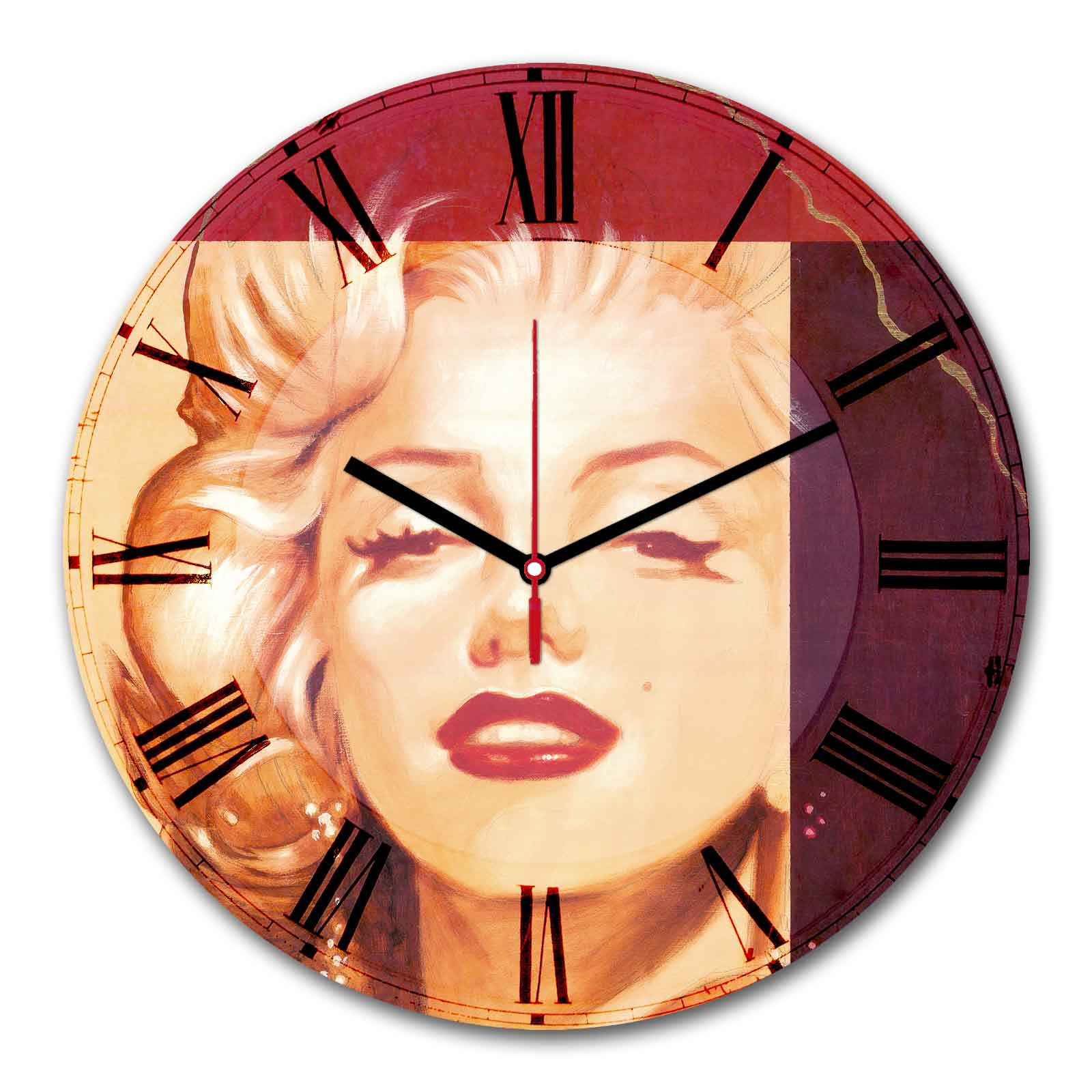 Com 30cm de diâmetro (32cm x 32cm x 5cm), este relógio apresenta dimensões ideais para ser apreciado sem dominar o espaço. O seu design cuidadosamente proporcionado permite uma leitura clara das horas enquanto serve como uma elegante peça decorativa que complementa qualquer parede.