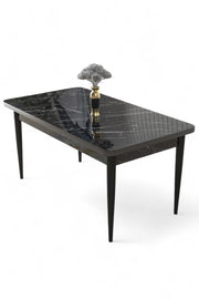 Mesa de Jantar – 110cm x 76cm x 71cm – Mármore Preto – MDF e Metal